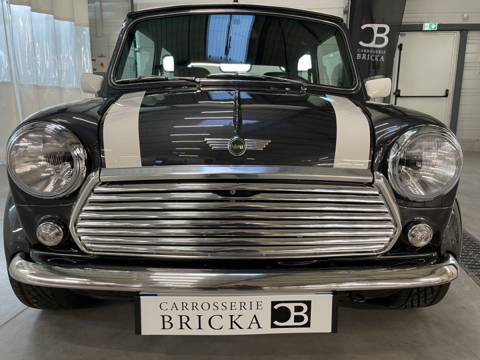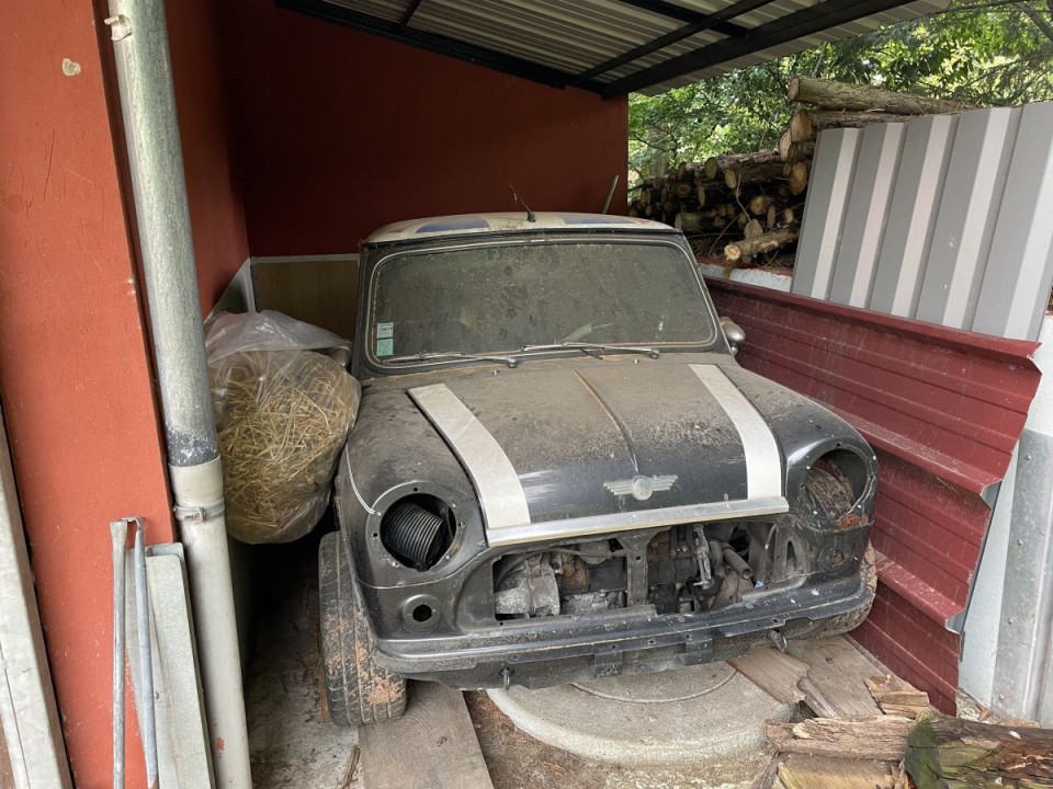 Après un long séjour dans une grange, la Mini nous a été confiée pour une remise en état intégrale. Après une mise à nue complète, toutes les pièces de tôleries endommagées par la rouille ont été remplacées, puis elle a subi un traitement anti-corrosion à l'époxy suivi d'une peinture complète. Les trains roulants ont été remis en état et également traités à l'époxy. Les boiseries intérieures ont été entièrement remplacées.